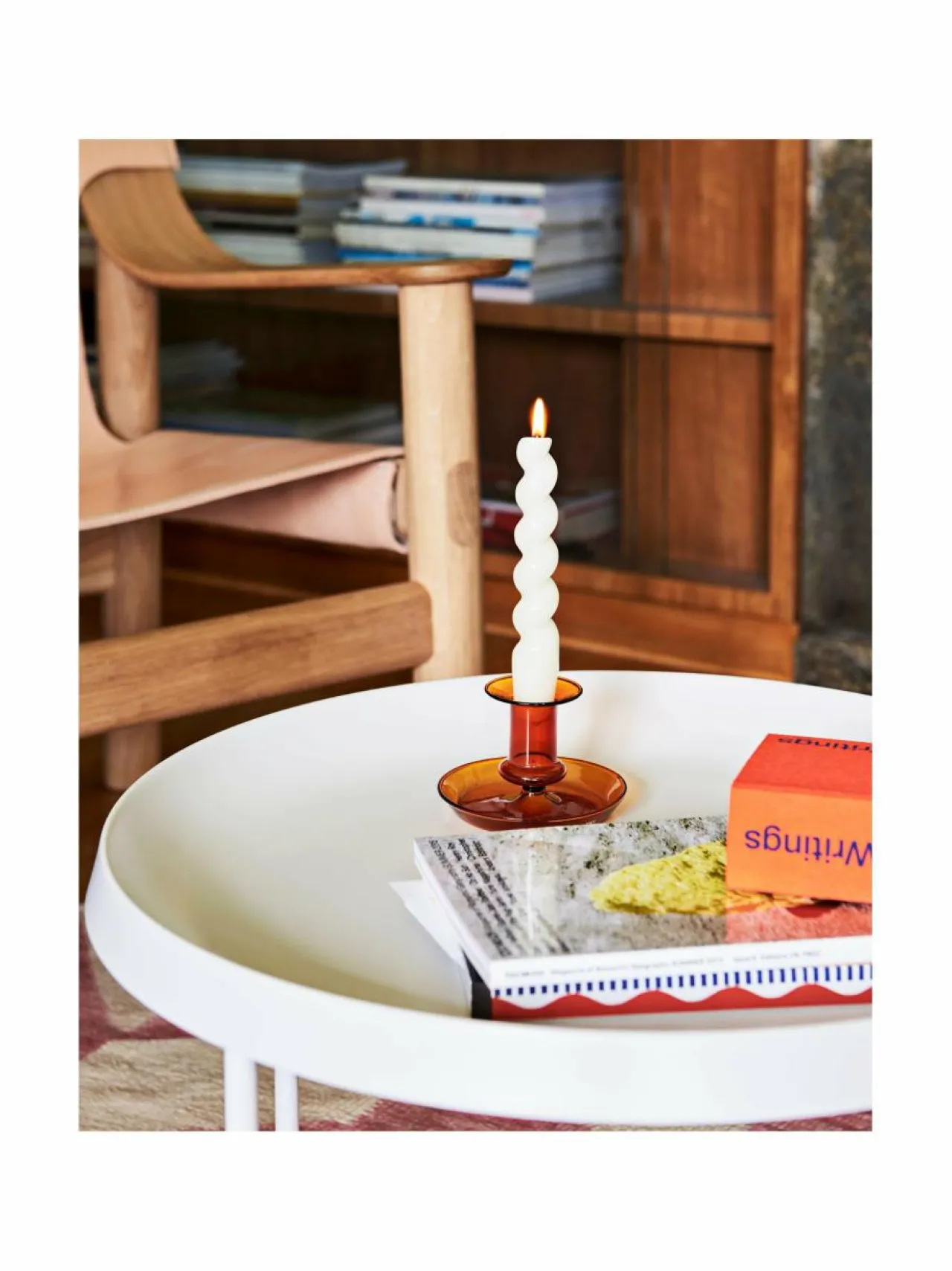 HAY Flare -kynttilänjalka on tyylikäs ja erottuva tapa tuoda kynttilöiden lämpöä ja tunnelmaa kotiisi. Tämä kaunis kynttilänjalka on valmistettu värillisestä borosilikaattilasista, mikä antaa sille elegantin ja ainutlaatuisen ilmeen. Voit käyttää sitä yksinään tai yhdistellä muiden Flare-sarjan tuotteiden kanssa. Suositellaan käsinpesua.