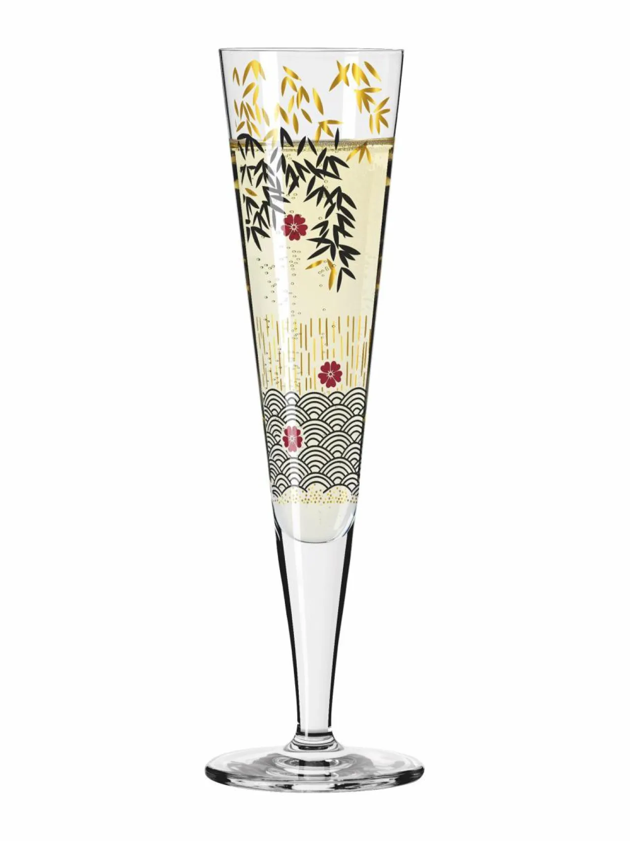Sampanjalasi suunnittelija Kathrin Stockebrandin tyylikkäällä kuviolla. Ritzenhoff-merkin kuohuviinilasissa on elegantti muotoilu kristallista ja koristeet kullasta. Lasissa on samppanjaa sekä kuohuviiniä varten täydellinen pitkähkö muoto. Luo omalaatuinen ja elegantti kattaus. Toimitetaan kauniissa lahjapakkauksessa.