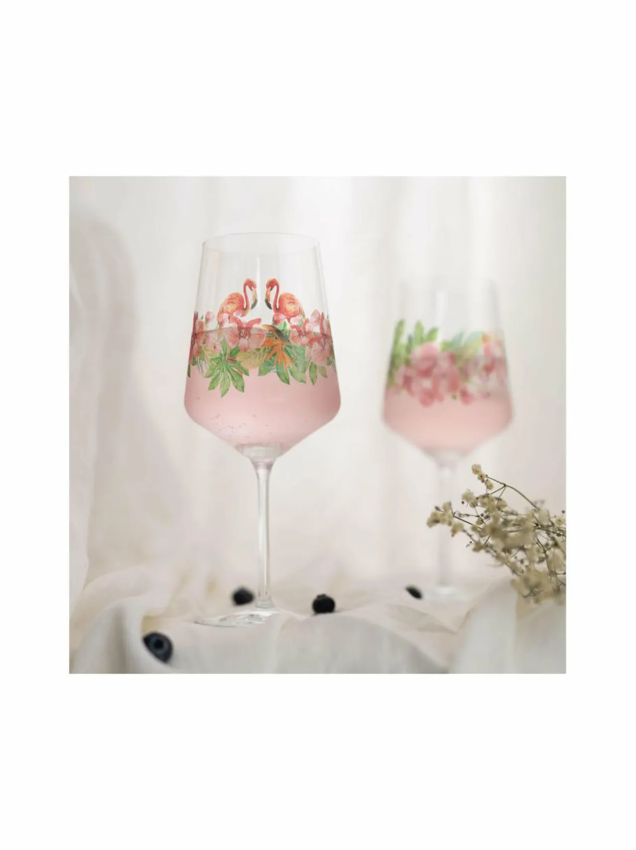 Ritzenhoff Sommersonett Sprizz -aperitiivilasi on ihanteellinen viineille, aperitiivijuomille, spritzille, mehulle ja muille cocktailjuomille. Materiaalina on käytetty astianpesukoneen kestävää kristallia. Juomalasin vetoisuus on 544 ml ja korkeus 22,50 cm. Viehättävän kuvion kukista ja flamingosta on luonut kuviosuunnittelija Artur Hakobyan.