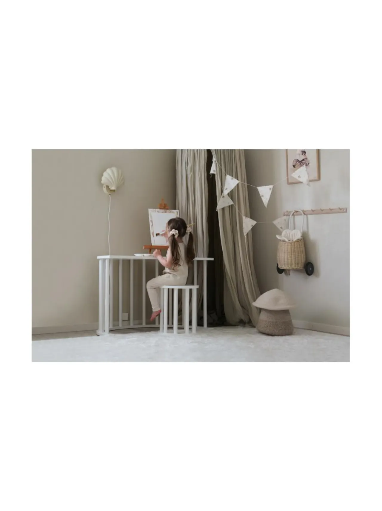 LUOTO jakkara on monipuolinen kumppani rakastetulle LUOTO kiipeilykaarellemme. Yhdessä ne luovat kauniin työpisteen, joka on ihanteellinen 6–11-vuotiaalle lapselle, mutta ei siinä vielä kaikki. Käännä jakkara ympäri ja se muuntautuu maalikoriksi erilaisiin pallopeleihin luoden yhden uuden aktiivisuutta edistävän elementin lapsesi arkeen. Kuten samaa nimeä kantava kiipeilykaaremme, LUOTO jakkara on suunniteltu sopimaan osaksi mitä tahansa kodin tilaa, sen sijaan että se toimisi vain lastenhuoneen kalusteena. Sen lisäksi että LUOTO toimii jakkarana ja maalikorina lasten leikeissä, sen abstrakti muotokieli mahdollistaa tuotteen käytön esimerkiksi pienenä sivupöytänä, kasvijalustana tai yöpöytänä.