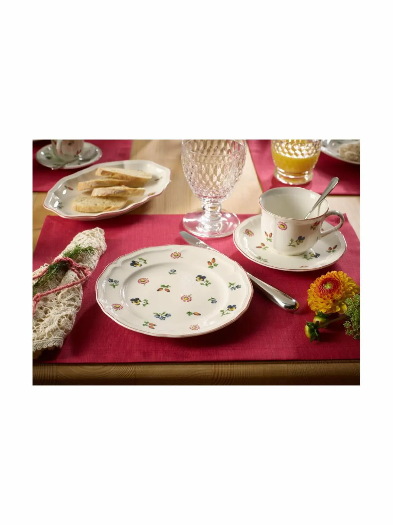 Villeroy & Bochin Petite Fleur -sarjan astiat on valmistettu lasitetusta posliinista. Lautasta koristavat useat erilliset kukkakuviot sekä elegantit kohokuviot ja kontrastinen ääriviiva reunalla. Sarjan posliiniset astiat ovat mikroaaltouunin ja konepesun kestäviä.