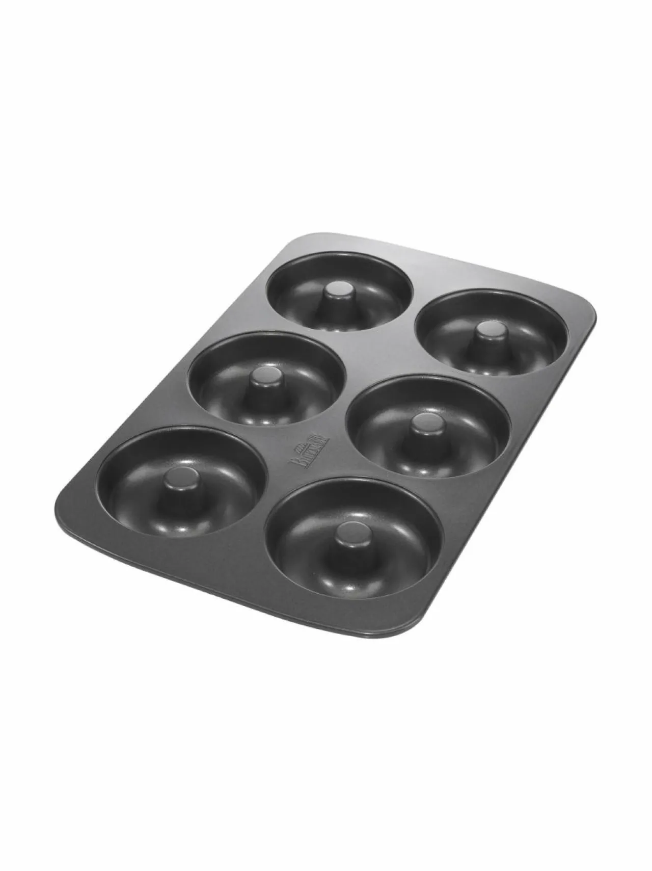 Donitsivuoassa on tarttumaton pinnoite. Vuoassa valmistat kerralla kuusi herkullista donitsia. Yhden donitsin halkaisija on 9 cm.