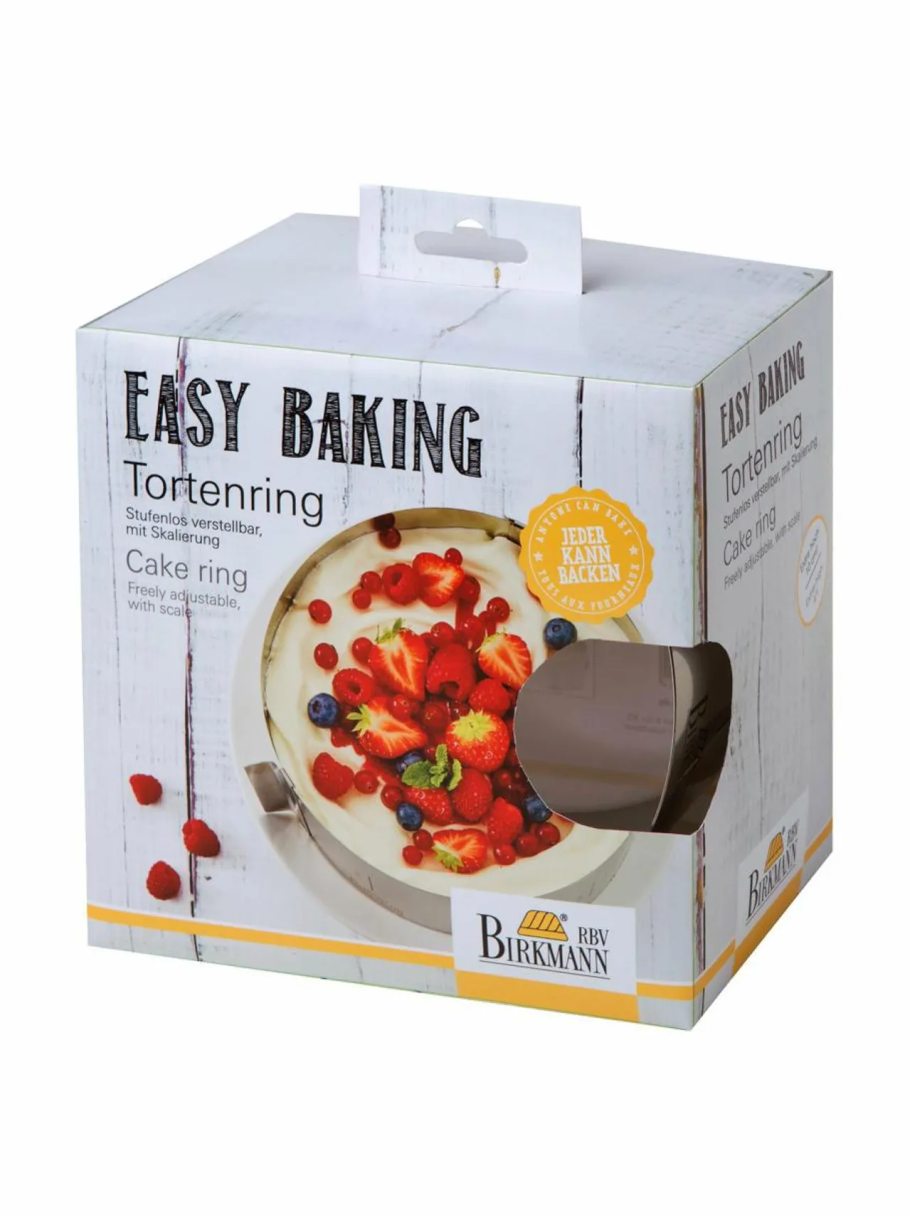 Säädettävän kakkurenkaan avulla kakkujen leipominen ja koristelu on helppoa. Renkaan korkeus on 10 cm ja säätö 18-30 cm välillä.