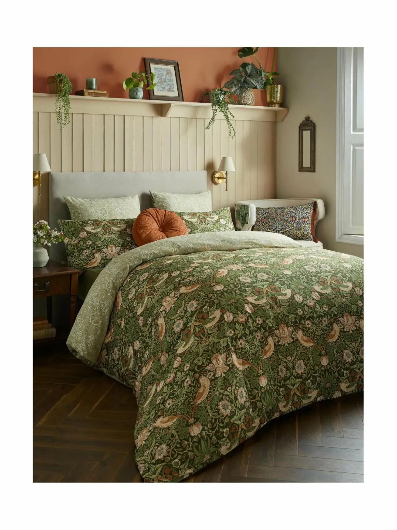 Liinavaatteet|William Morris At Home Strawberry Thief -satiinipussilakanasetti 34 NETTLE GREEN