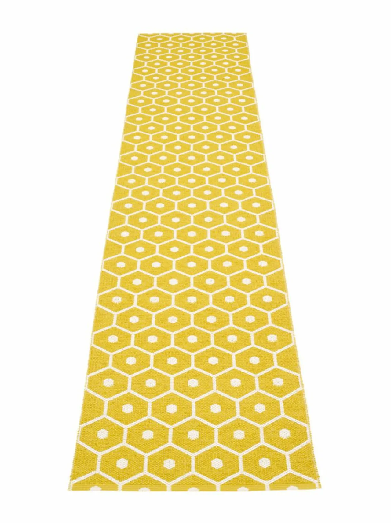 Ruotsin Taalainmaalla käsityönä valmistetut Pappelina-muovimatot ilahduttavat raikkaan skandinaavisella ilmeellään ja käytännöllisyydellään. Polyesteriloimesta ja ftalaatittomasta muovista valmistetut matot sopivat kodin kaikkiin tiloihin ja puhdistuvat helposti käsin tai koneessa. Geometrisesti kuvioidusta Honey-muovimatosta on saatavilla useita eri värejä ja kokoja, joista löytyy helposti sopiva matto niin kylpyhuoneeseen, eteiseen, keittiöön kuin lastenhuoneeseenkin. Käännettävän maton toisella puolella on sama kuvio vastakkaisin sävyin.