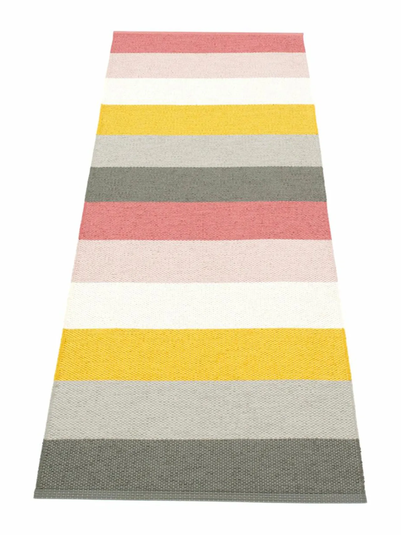 Ruotsin Taalainmaalla käsityönä valmistetut Pappelina-muovimatot ilahduttavat raikkaan skandinaavisella ilmeellään ja käytännöllisyydellään. Polyesteriloimesta ja ftalaatittomasta muovista valmistetut matot sopivat kodin kaikkiin tiloihin ja puhdistuvat helposti käsin tai koneessa. Raidallisesta Molly-muovimatosta on saatavilla useita eri värejä ja kokoja, joista löytyy helposti sopiva matto niin kylpyhuoneeseen, eteiseen, keittiöön kuin lastenhuoneeseenkin.