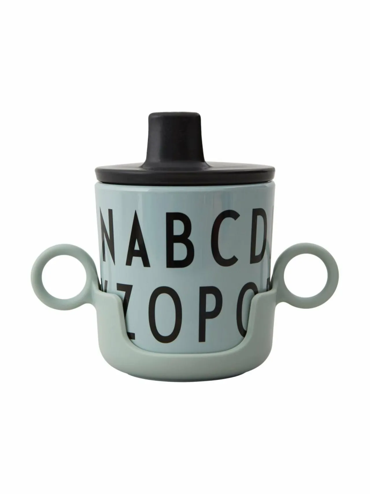 Design Lettersin tukeva, kaksin käsin pideltävä kahva helpottaa Arne Jacobsen -melamiinikirjainmukin käyttöä. Kahva on suunniteltu erityisesti perheen pienimpien iloksi.