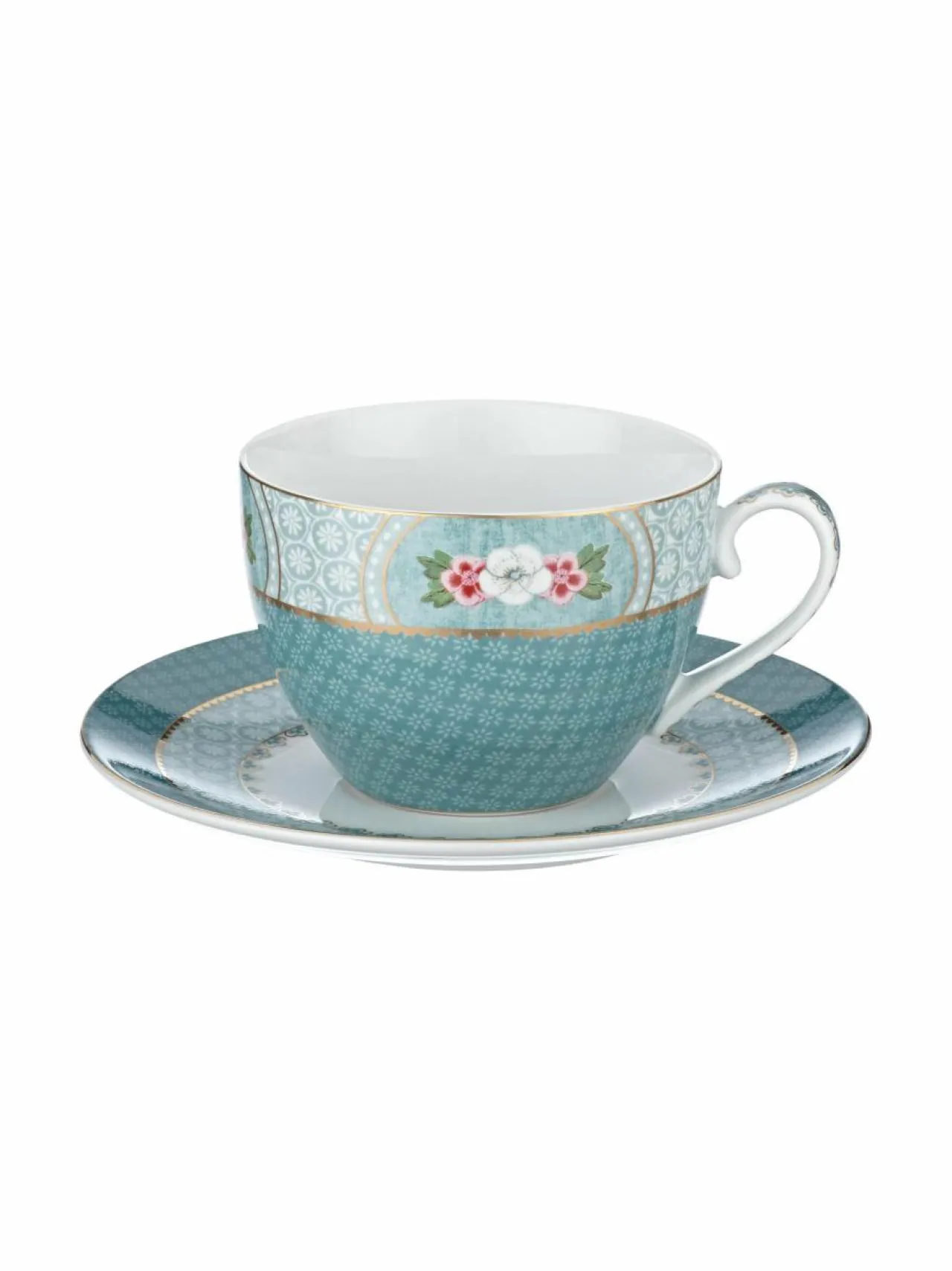 Mukit & Kupit & Asetit|PIP Studio Blushing Birds -cappuccinokuppi 280 ml ja lautanen BLUE
