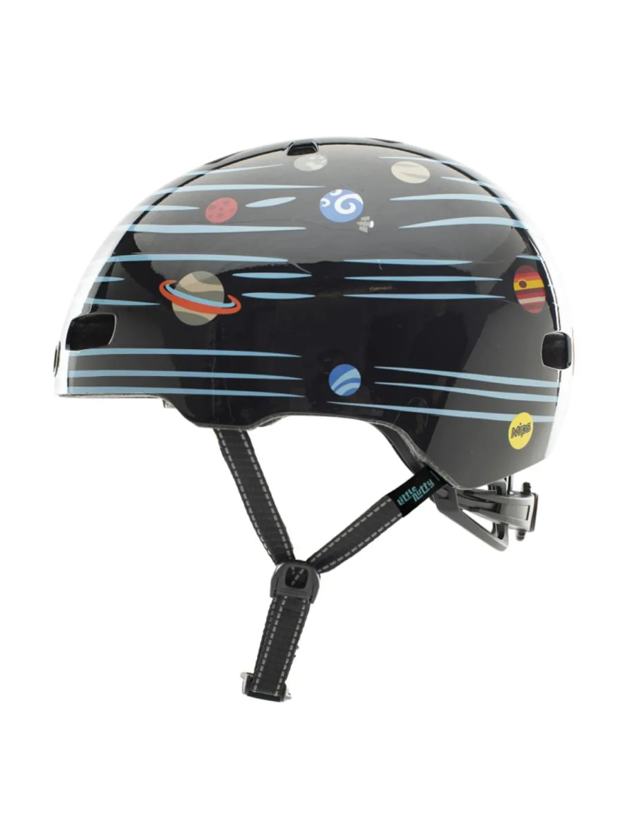 Little Nutty pyöräilykypärässä on 11 muotoiltua ilmanvaihtoaukkoa täydelliseen jäähdytykseen, kestävä ruiskuvalettu ABS-kuori, jonka sisällä on Crumple Zone EPS-sisus, sekä 100% MIPS ja 360 asteen heijastavuus logojen, heijastavien hihnojen ja sovitusjärjestelmän ansiosta. Kypärässä on näppärä ja vaivaton Snap & Go Fidlock magneettinen leukahihnan lukitusjärjestelmä. Irrotettavat 3-osaiset tyynypehmusteet varmistavat turvallisuuden, yksilöllisen istuvuuden ja mukavuuden. Kypärän takana on korkeussäädettävä takakiristin ja edessä helposti irrotettava visiiri.