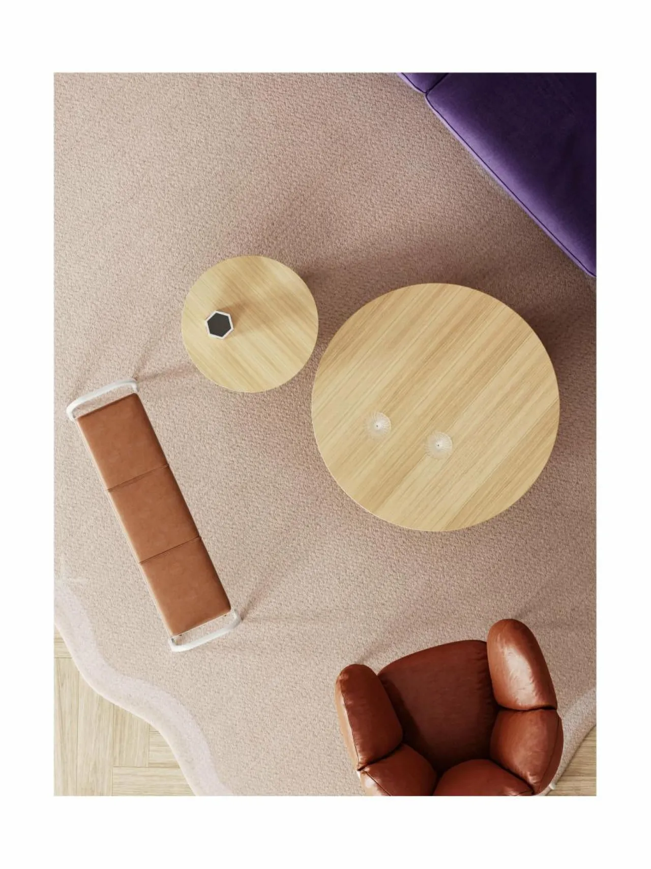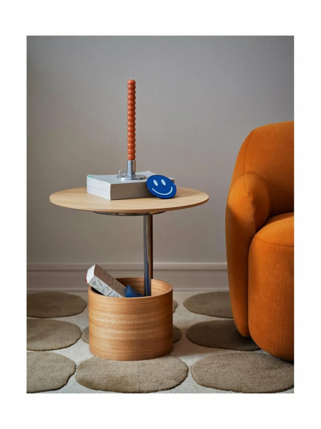 Sohvapöydän nimi Parasol viittaa leikkisästi aurinkovarjoihin, englanniksi ”parasol”. Pöydän jalusta nimittäin toimii samalla säilytystilana vaikkapa viltille, lasten leluille tai lukemistaan odottaville aikakausilehdille. Esineet eivät ole täysin piilossa, mutta kuitenkin suojassa varjon alla. Tämä sohvapöytä on enemmän kuin vain huonekalu – se on taiteellinen elementti, joka tuo sisustukseesi modernia tyylikkyyttä. Toimitetaan osissa. Mitat: Halkaisija 50 cm ja korkeus 50,2 cm.