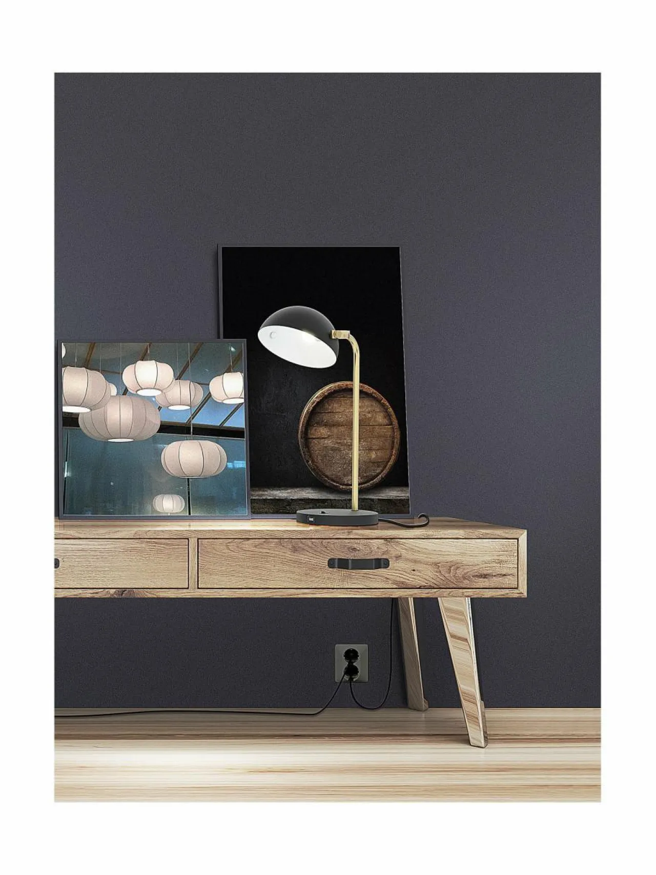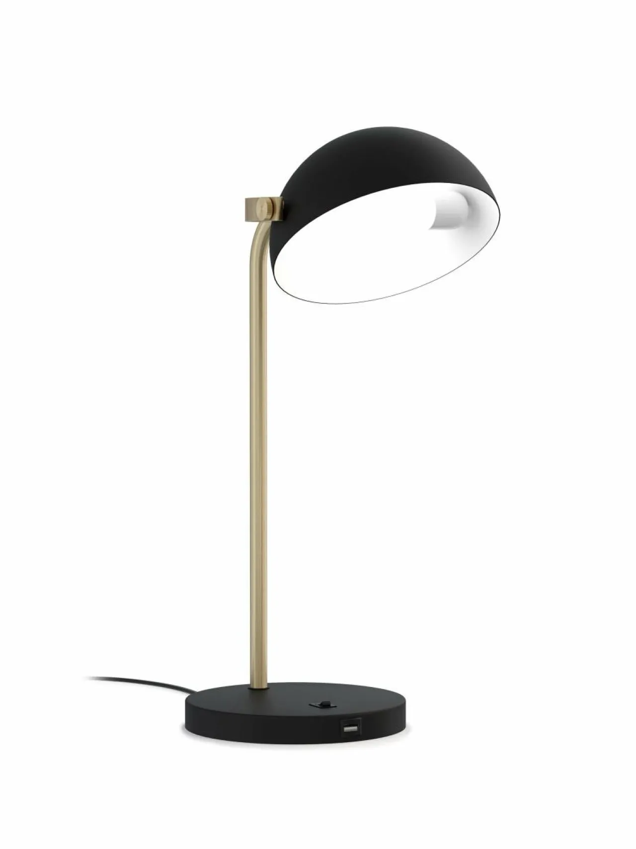 Pivo-pöytävalaisin huokuu arvokkuutta upean antiikkimessinkisen runkonsa ja mustan kupunsa ansiosta. Niiden suunnittelun keskiössä on puolipallon muotoinen kupu, joka on taidokkaasti asetettu messinkisen kaaren varaan, luoden valon, joka heijastuu kauniisti laajalle alueelle. Valaisimien runko on viimeistelty antiikkimessingillä, kun taas jalusta ja kupu erottuvat tyylikkään mattamustalla sävyllään.Pöytävalaisin tarjoaa modernin lisän USB-portin muodossa, mahdollistaen kätevän mobiililaitteiden latauksen.