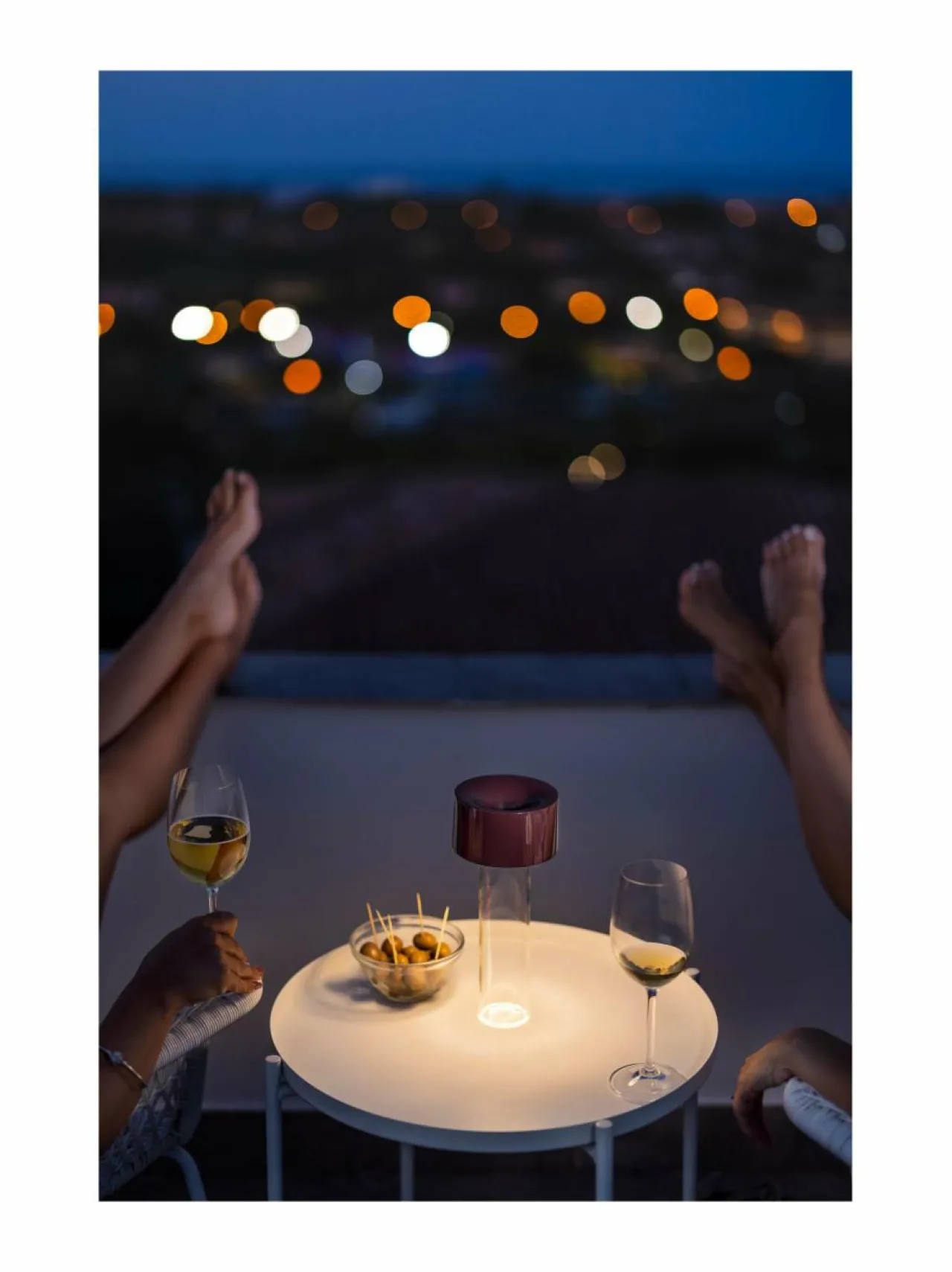 Latausaika on 4,5 tuntia. Valon kesto: 7 tuntia 100 %:ssa, 9 tuntia 70 %:ssa, 13 tuntia 30 %:ssa.Tuotenumero170681924 MateriaaliLasi, muovi Valonlähde1,6 W LED ValmistusmaaItalia VäriBURGUNDY Koko11 x 24 cm Avainsanatfoscarini, valaisin, led valaisin, maljakko, kannettava, ladattava, akkuvalaisin, johdoton
