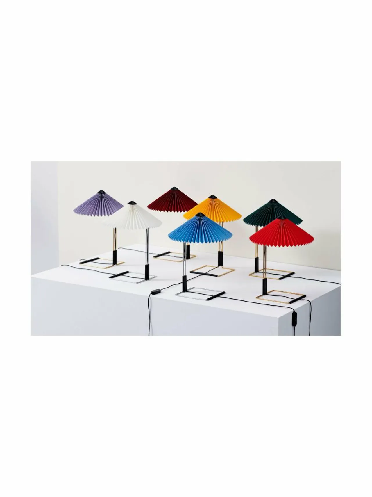 Hay Matin -pöytavalaisimessa on modernia, poeettista muotokieltä, jossa visuaalinen herkkyys yhdistyy fyysiseen jykevyyteen. Lamppu muotoutuu teräslangasta taivutetusta rungosta, joka on viimeistelty kiiltävällä messingillä ja mattamustilla yksityskohdilla. Runkoon on yhdistetty pliseeratusta puuvillakankaasta valmistettu lampunvarjostin. Valonlähteenä toimii kiinteä LED-lamppu, joka tarjoaa pehmeää, alaspäin suuntautuvaa valoa. Himmentimen avulla säädät valon määrää.