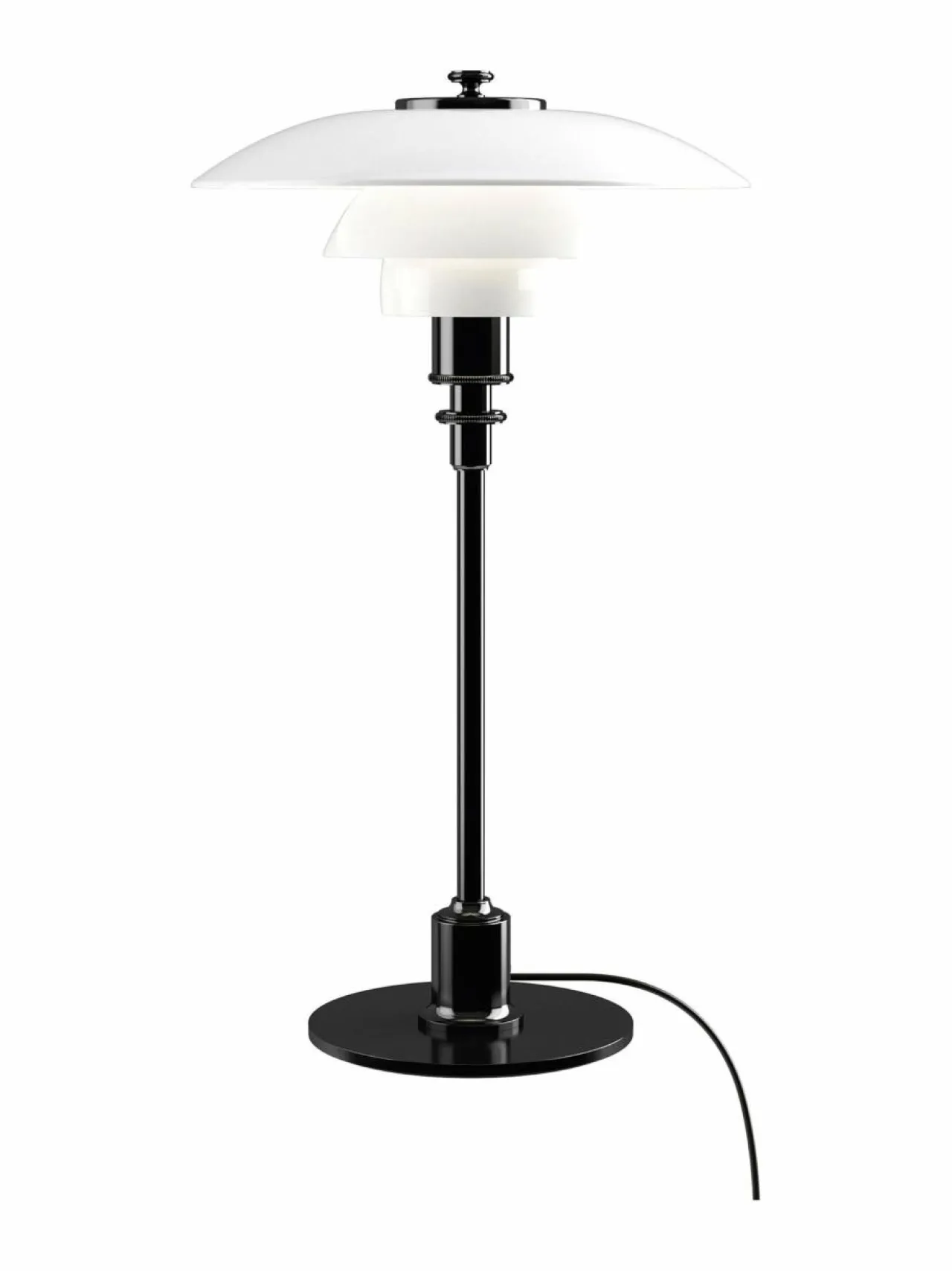 Poul Henningsenin suunnitteleman PH 2/1 -pöytävalaisimen kolmesta opaalilasiosasta koostuva varjostin luo pehmeän ja häikäisemättömän, tasaisesti levittyvän valon. Suunnitellessaan kolmivarjostinjärjestelmän 1920-luvulla Henningsen oli yksi ensimmäisistä, joka omaksui tieteellisen näkökulman valosuunnitteluun – logaritmiseen spiraaliin perustuva muoto sallii symmetrisen valon varjostimen koko alueelle.
