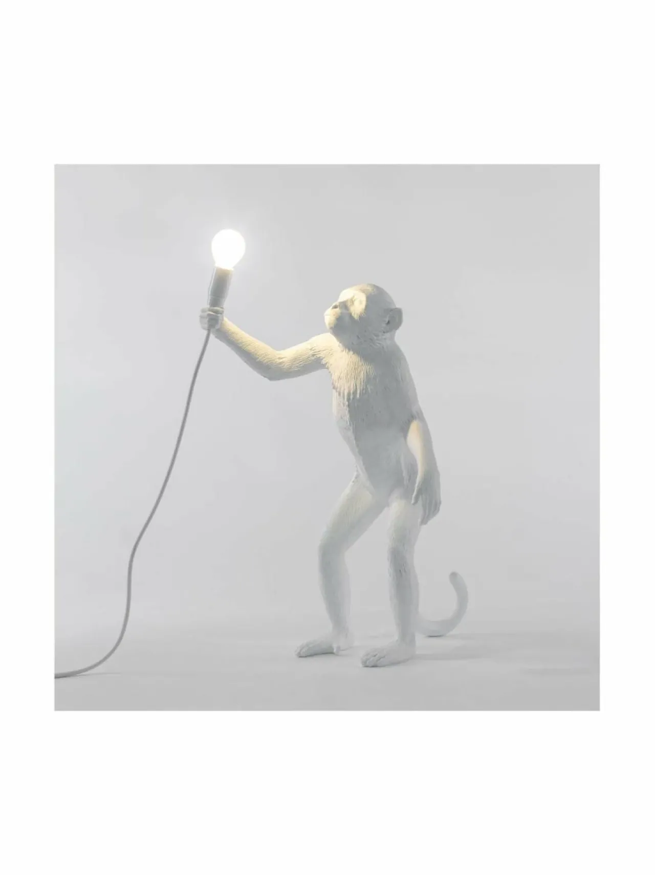 Seletti Monkey Lamp Standing -pöytävalaisimessa on Marcantonio Raimondi Malerban suunnittelema upean yksityiskohtainen apinahahmo, joka pitelee kädessään pientä LED-valonlähdettä. Veikeä pöytävalaisin piristää niin yöpöytää kuin työhuonetta ja tuo tropiikin tunnelmaa olohuoneeseen. Valonlähde sisältyy pakkaukseen.