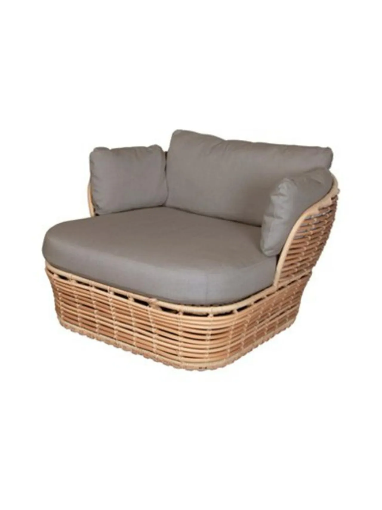 Basket-nojatuoli ulkokäyttöön. 110 cm lev, 100 syv, 70 kork, 40 istuinkork. Muhkea ja mukava Cane-Line Air Touch taup…