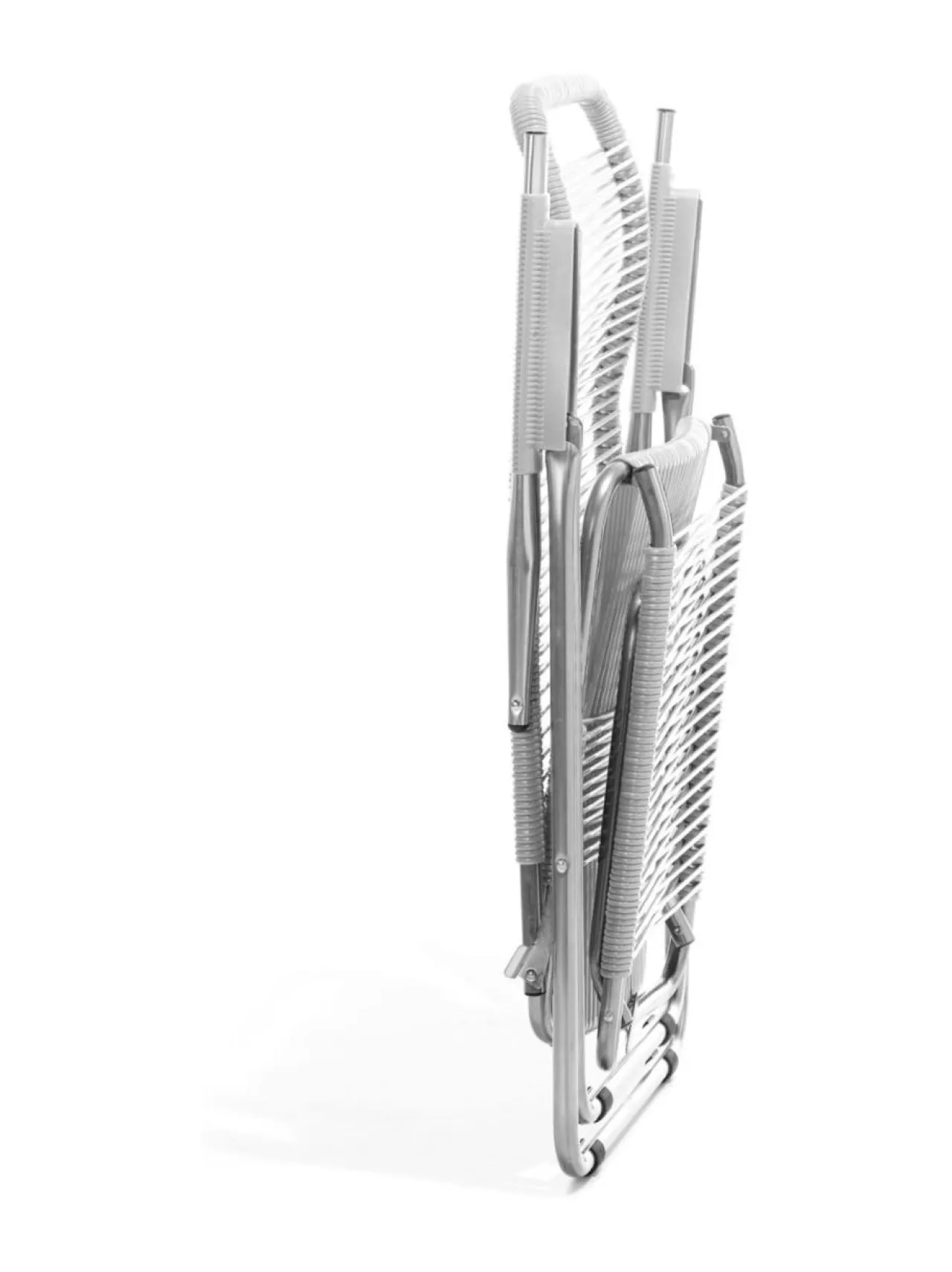 Korkealaatuisesta alumiinista valmistettu tuolin kehikko tekee siitä kestävän ja tukevan. PVC-materiaalista valmistettu spaghettimainen punos takaa maksimaalisen mukavuuden aurinkoisiin kesäpäiviin. Taittuvan rakenteensa ansiosta tuolia on helppo siirtää, varastoida tai vaikkapa ottaa rannalle mukaan.