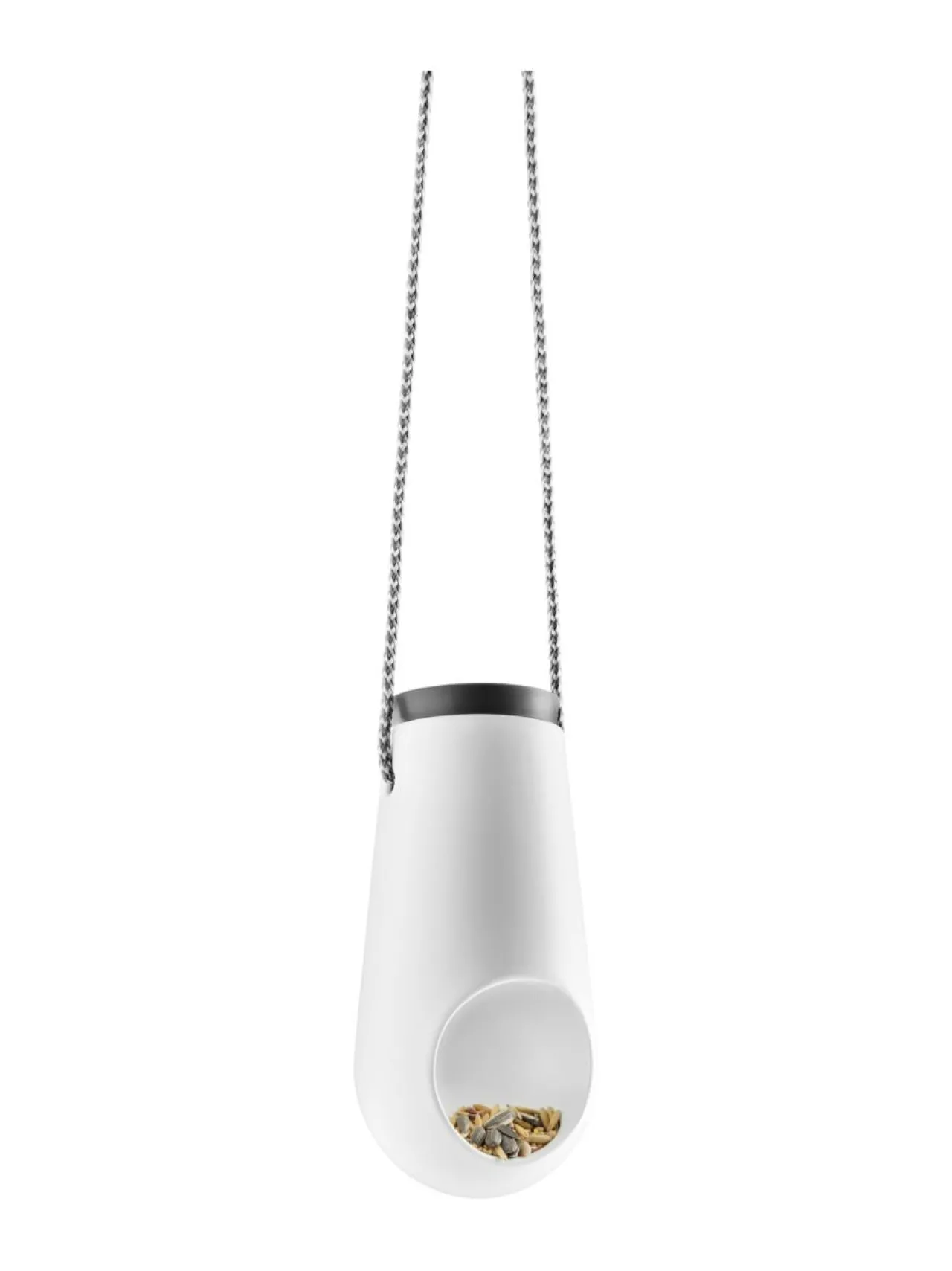Eva Solon ripustettavan lintulaudan avulla autat kotipihan pikkulintuja selviämään kylmän talven yli. Nailonisesta narusta keraaminen lintulauta on helppo ripustaa puunoksaan tai amppelikoukkuun terassille, ja täyttäminen onnistuu kätevästi yläosan kannen kautta. Voidaan pestä astianpesukoneessa.