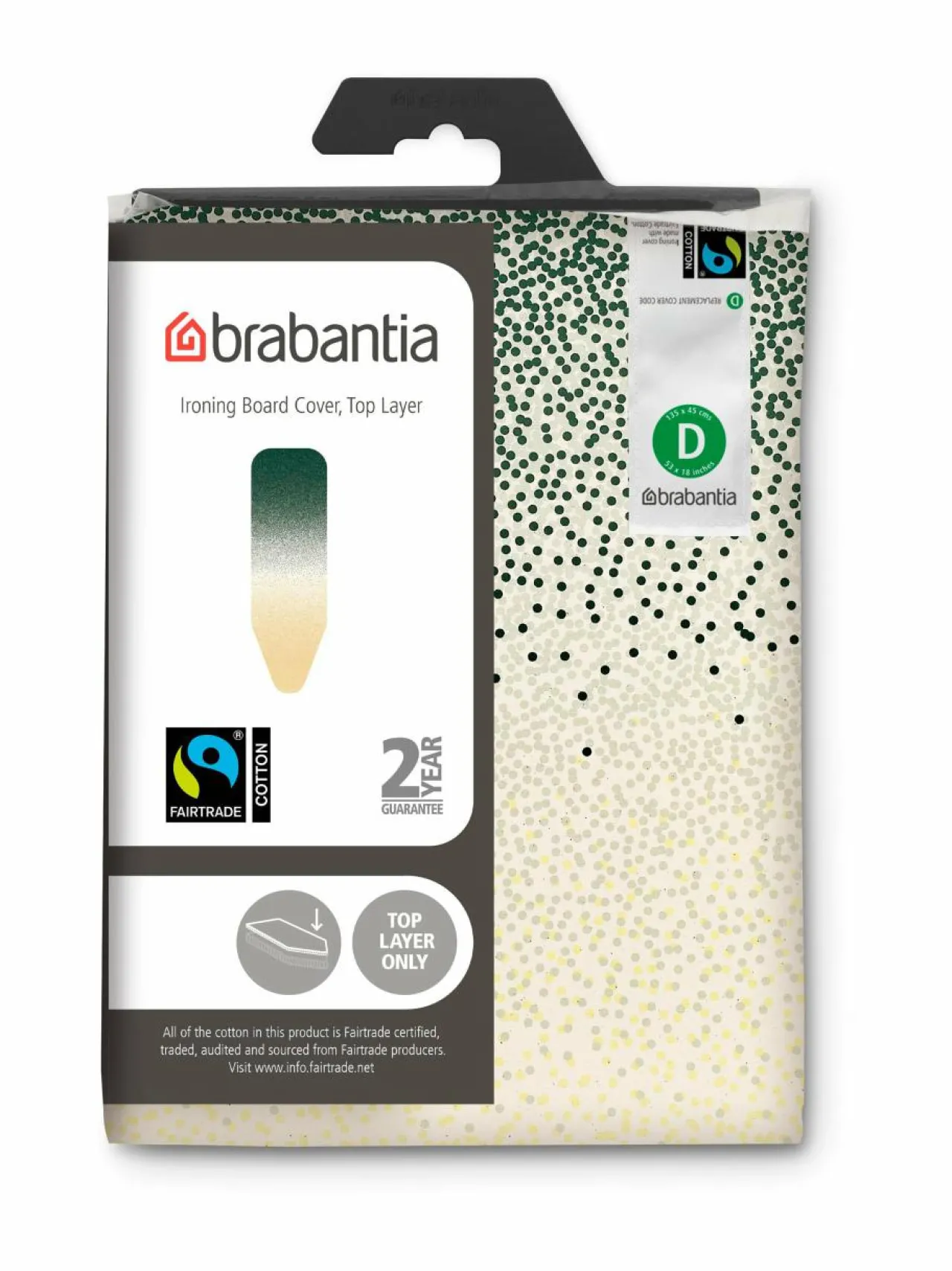 Silityslaudan päällinen sopii sekä tavalliseen että höyrysilitykseen, joka sopii täydellisesti Brabantian New Dawn D -silityslaudalle. Kestävä puuvillapäällinen on valmistettu valkaisemattomasta Reilun Kaupan -puuvillasta. Kaikki Brabantian silityslautojen vaihtopäälliset on merkitty kirjaintunnuksella; sama tunnus löytyy myös Brabantian silityslaudoista, mikä tekee oikean päällisen valinnasta helppoa. Huomioithan, että silityspäällisen kuviointi voi poiketa kuvasta.