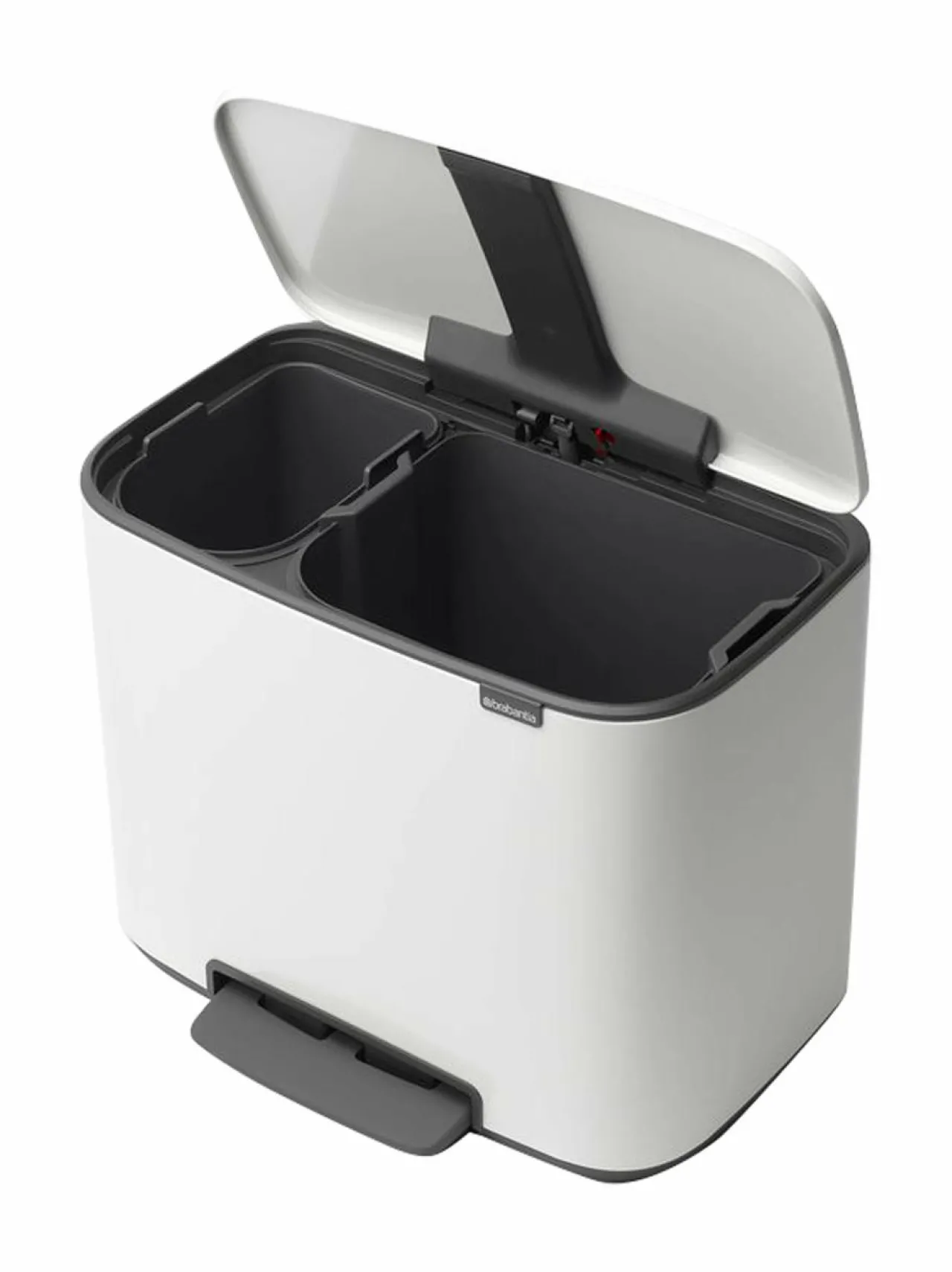 Brabantian Bo-poljinroskakorin ansiosta näet jätteiden lajittelun uusin silmin. Roska-astia sopii ihanteellisesti kodin jätteiden lajitteluun, sillä tuotteessa on kaksi sisäastiaa. Hajutiiviissä roskakorissa on kätevä poljinmekanismi ja automaattinen, erittäin hiljainen sulkumekanismi. Liukuesteillä varustettu pohja ei naarmuta lattiaa ja roska-astia pysyy tukevasti pystyssä. Muotoilunsa ansiosta Bo-poljinroskakori mahtuu tiiviisti seinää vasten.