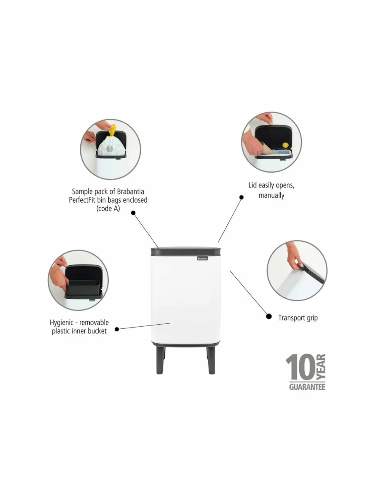 Roskakorit & -Pussit|Brabantia Bo-roskakori 4 l WHITE