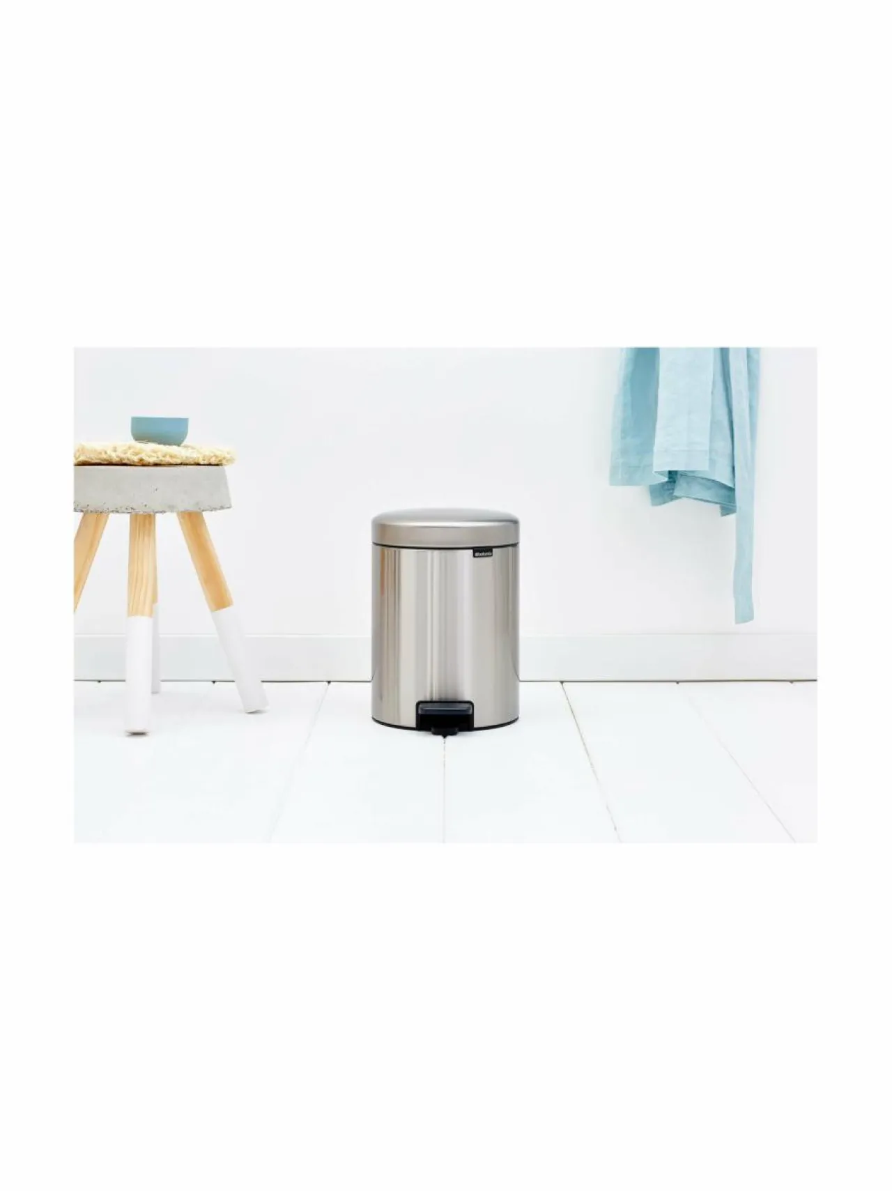 Brabantian kompakti ja suoralinjainen newIcon-poljinroskis on tyylikkäästi mattapintaiseksi harjattua terästä. Roskakorin pinta pysyy helposti puhtaana sormenjälkiä hylkivän käsittelyn ansiosta. Tilavuudeltaan 5-litraisessa poljinroskakorissa on pehmeästi ja hiljaisesti sulkeutuva kansi, lattiaa suojaava liukumaton pohja sekä irrotettava säiliöosa.