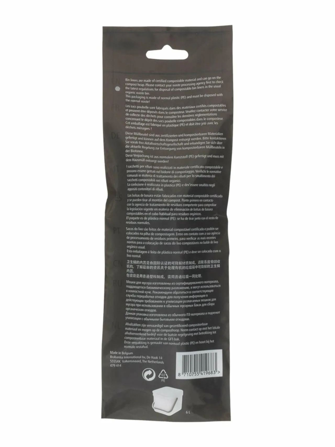 PerfectFit S -biohajoavat roskapussit on suunniteltu sopimaan Brabantian 6 litran Sort & Go -roska-astioihin. Brabantia-roska-astian kannen alla on kirjainkoodi, jonka avulla löydät oikeankokoisen roskapussin. Rullassa on 10 maissitärkkelyksestä valmistettua pussia.