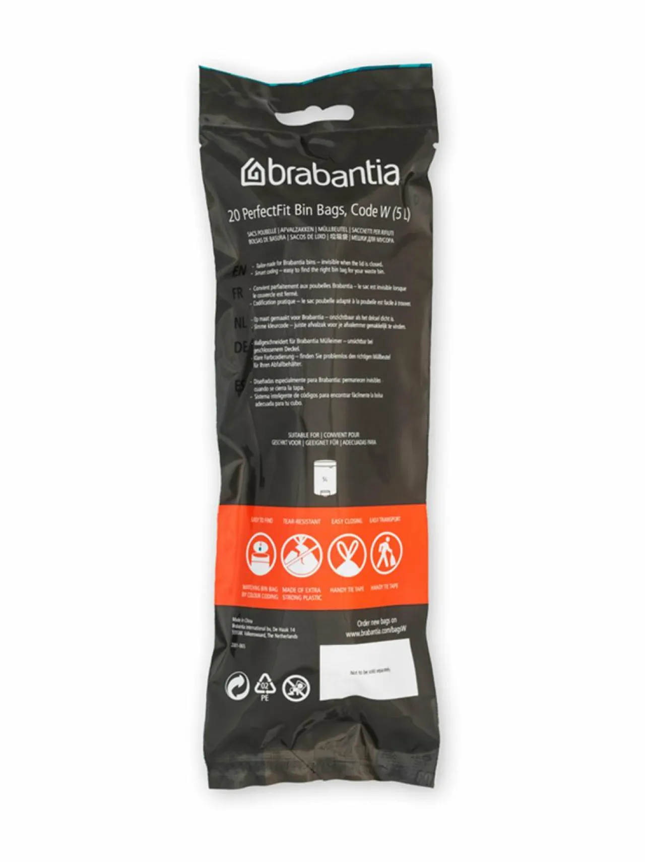 Brabantian roskapussit on suunniteltu sopimaan kaikkiin Brabantian roska-astioihin, sekä useimpiin muihin roska-astiamalleihin. Pusseissa on kiristyskahvat helppoa tyhjentämistä ja kuljettamista varten. Brabantian roska-astian kannen alla on kirjainkoodi, jonka avulla löydät oikean kokoisen roskapussin.