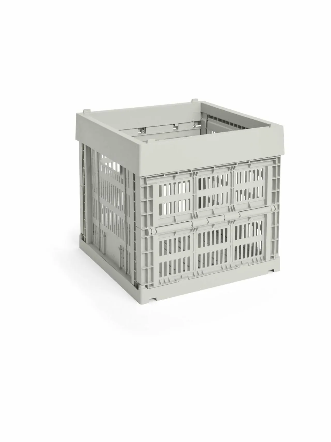 HAY Colour Crate on sarja värikkäitä säilytyslaatikoita, joissa on tunnusomainen rei’itetty muotoilu. Laatikot on valmistettu 100 % kierrätetystä materiaalista. Laatikoita voi pinota päällekkäin eri kokoyhdistelmissä. Monikäyttöiset laatikot sopivat erilaisten tavaroiden säilyttämiseen ja järjestämiseen hyllyillä, pöydillä tai kaapeissa. Laatikon mitat ovat 29,5 x 29,5 x 28,5 cm.