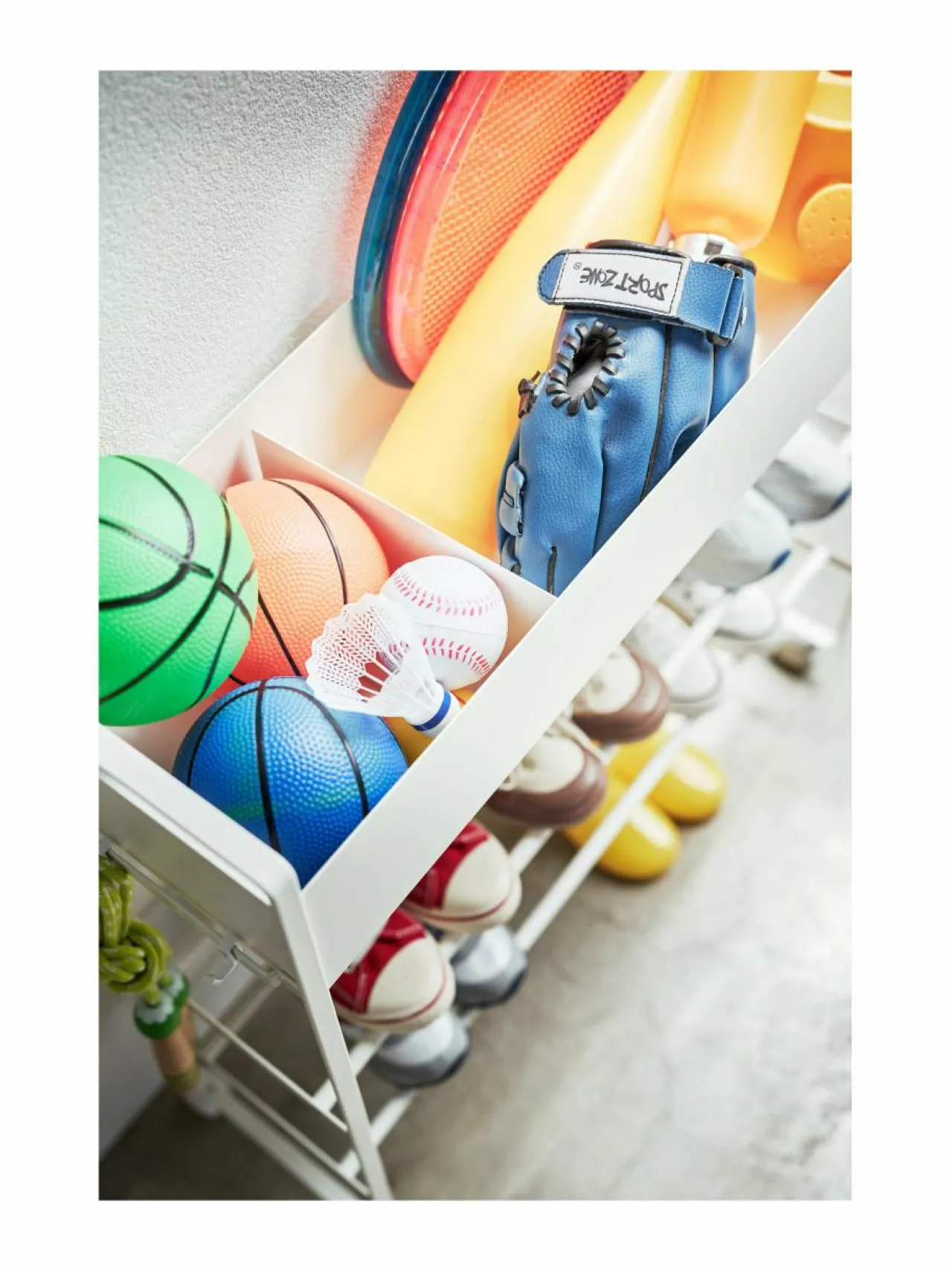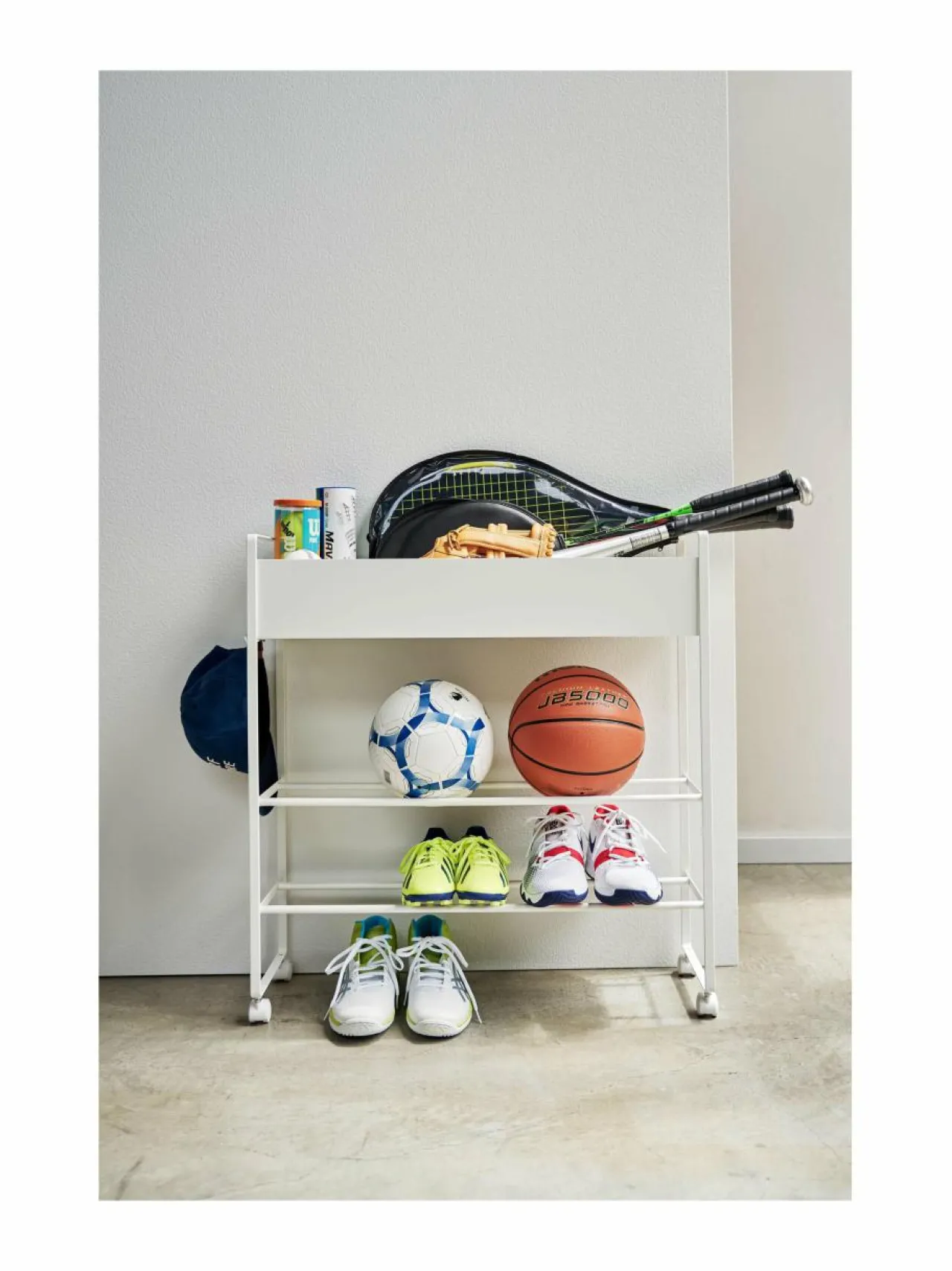 Yamazaki-merkin Tower-sarjan säilytyskärry on tyylikäs, tilava ja monikäyttöinen säilytyskaluste, joka sopii moneen tilaan aina lastenhuoneesta eteiseen.Yläosan laatikko on toimiva säilytyspaikka esim. käsineille, pipoille, leluille, palloille ja muille harrastusvälineille. Laatikossa on kätevä väliseinä, jonka sijaintia voi muuttaa magneettikiinnikkeiden ansiosta. Laatikon alapuolella on kaksi hyllytasoa, jotka sopivat erinomaisesti esimerkiksi kenkien säilyttämiseen.
