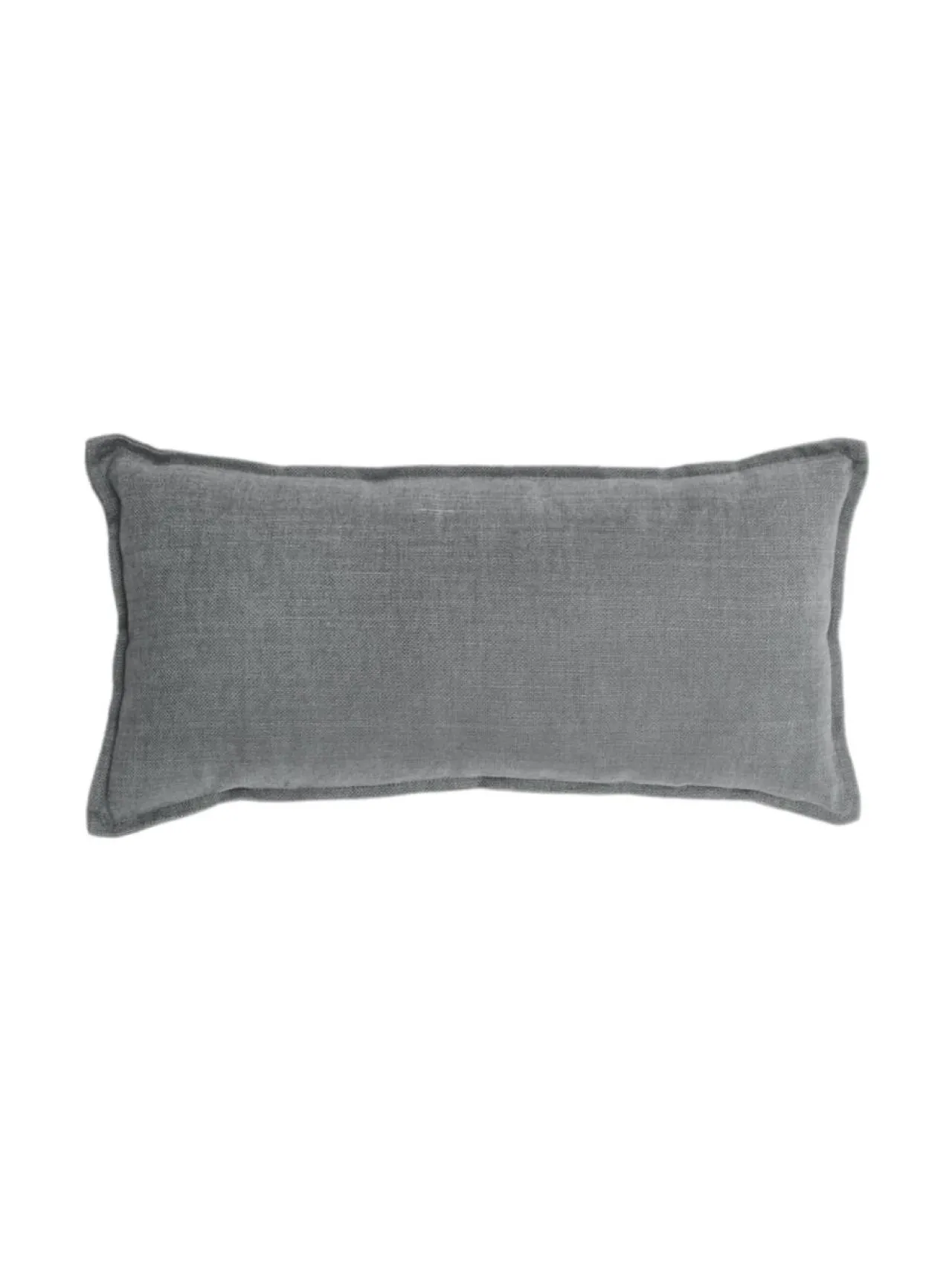 Modernilla reunalla varustettu Syli-tyyny on tehty miellyttävän pehmeäksi harjatusta puuvilla/pellava -kankaasta. Tyynyn koko on 50x25cm. Hinta sisältää muhkean sisätyynyn.