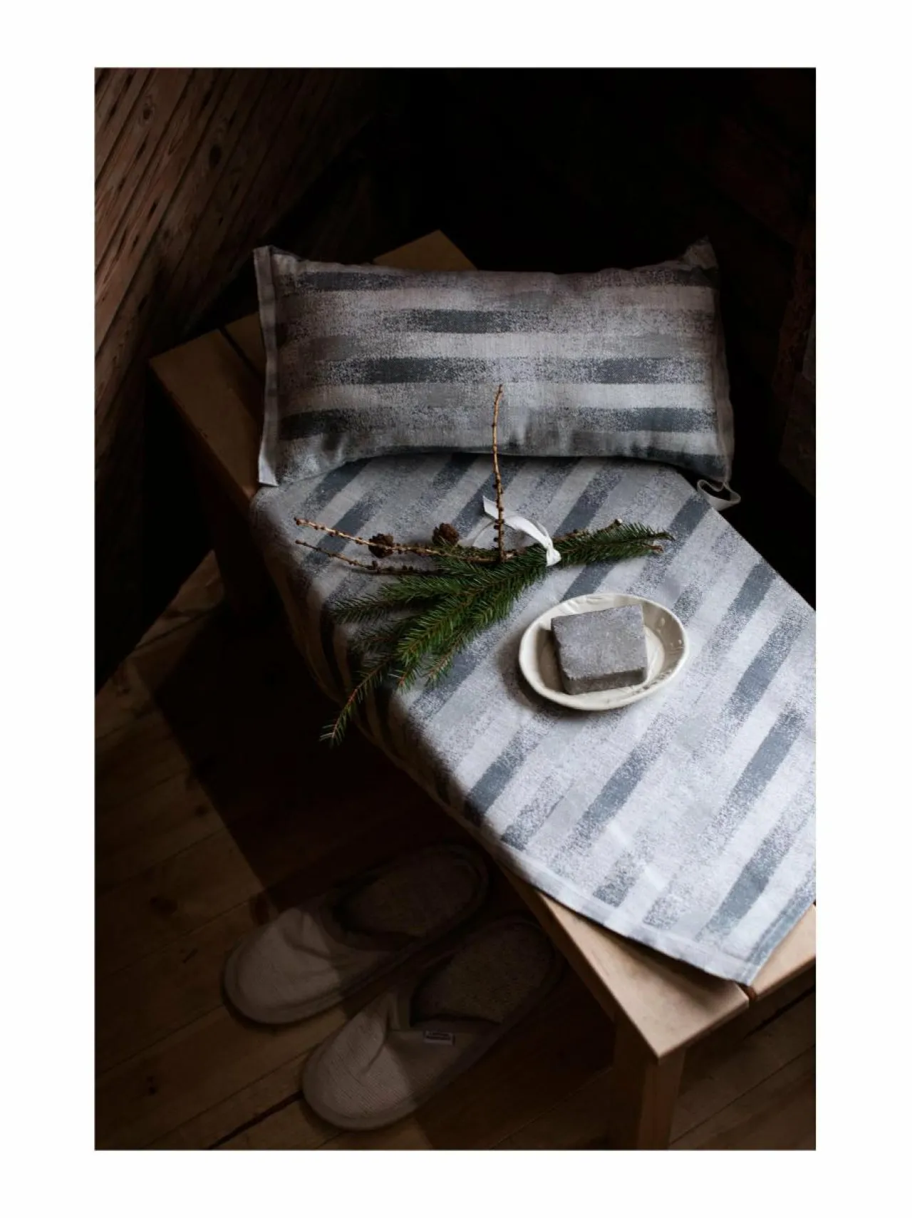 Sauna|Lapuan Kankurit Hohto-saunatyyny pellava-puuvillasekoitteesta 20 x 46 cm 9 WHITE-GREY