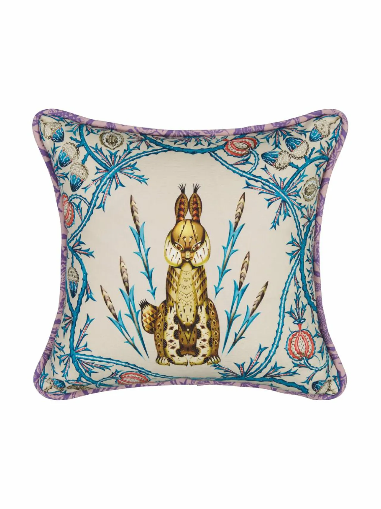 Tyynynpäällinen näyttävällä ilves-kuosilla. Kääntöpuolta sekä terettä koristaa kaksivärinen printti. Tyynynpäällisessä on piilovetoketju. Materiaalina ihana pellava-puuvillasekoitus.