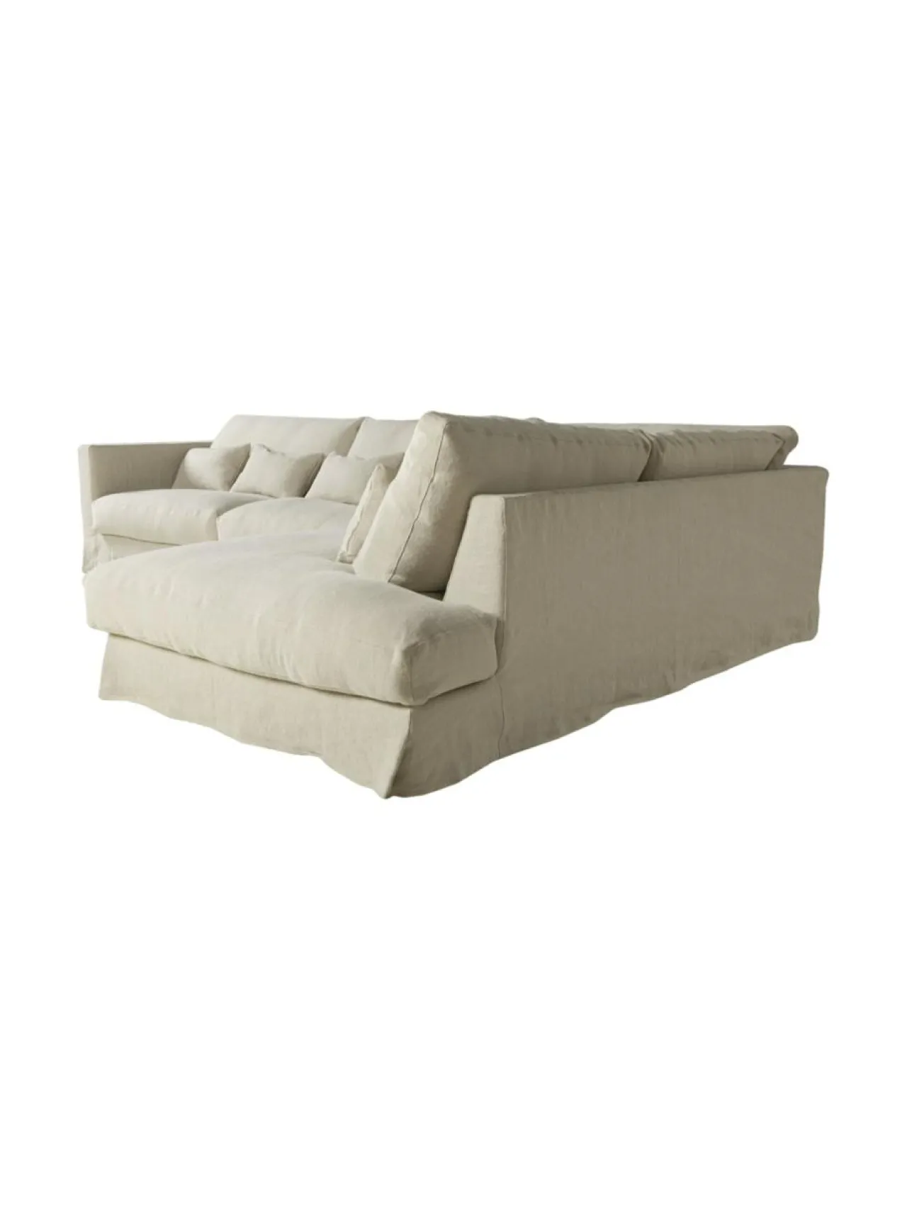 Sohvan leveys on 346 cm, korkeus 85 cm ja syvyys 110/235 cm. Sohvan istumakorkeus on 44 cm ja istuinsyvyys 65 cm.Tuotenumero603697 Materiaali100 % pellavaa Hoito-ohjeetSäännöllinen imurointi ja tyynyjen pöyhintä Pesulämpötila40 °C Väri9 AvainsanatAjaton, Käsityö, Räätälöity, Pestävä, Irrotettava, Pellava