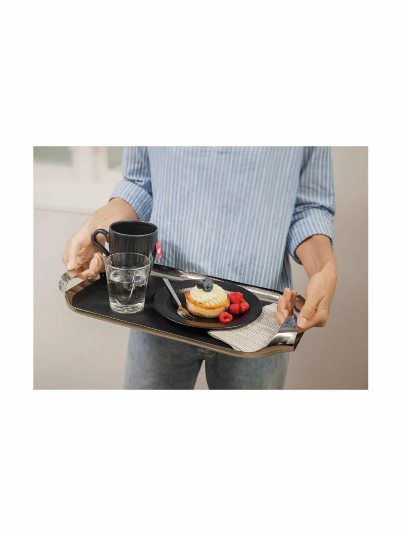 Eva Solon silikonimatto on suunniteltu erityisesti teräsistä tarjottimista valmistettuja tarjottimia varten. Silikoninen matto lisää vakautta ja estää tarjottavien liukumisen tarjottimella. Matto pitää tarjoilut paikoillaan, vaikka tarjotin olisi täynnä. Silikonimatto on hygieninen valinta, koska se ei ime nestettä ja estää bakteerien kasvua. Pyyhi matto puhtaaksi kostealla liinalla tai laita se astianpesukoneeseen perusteelliseen puhdistukseen. Matto on valmistettu silikonista, joka on kestävä ja helppohoitoinen. Matto on 21 x 40 x 0,5 cm.