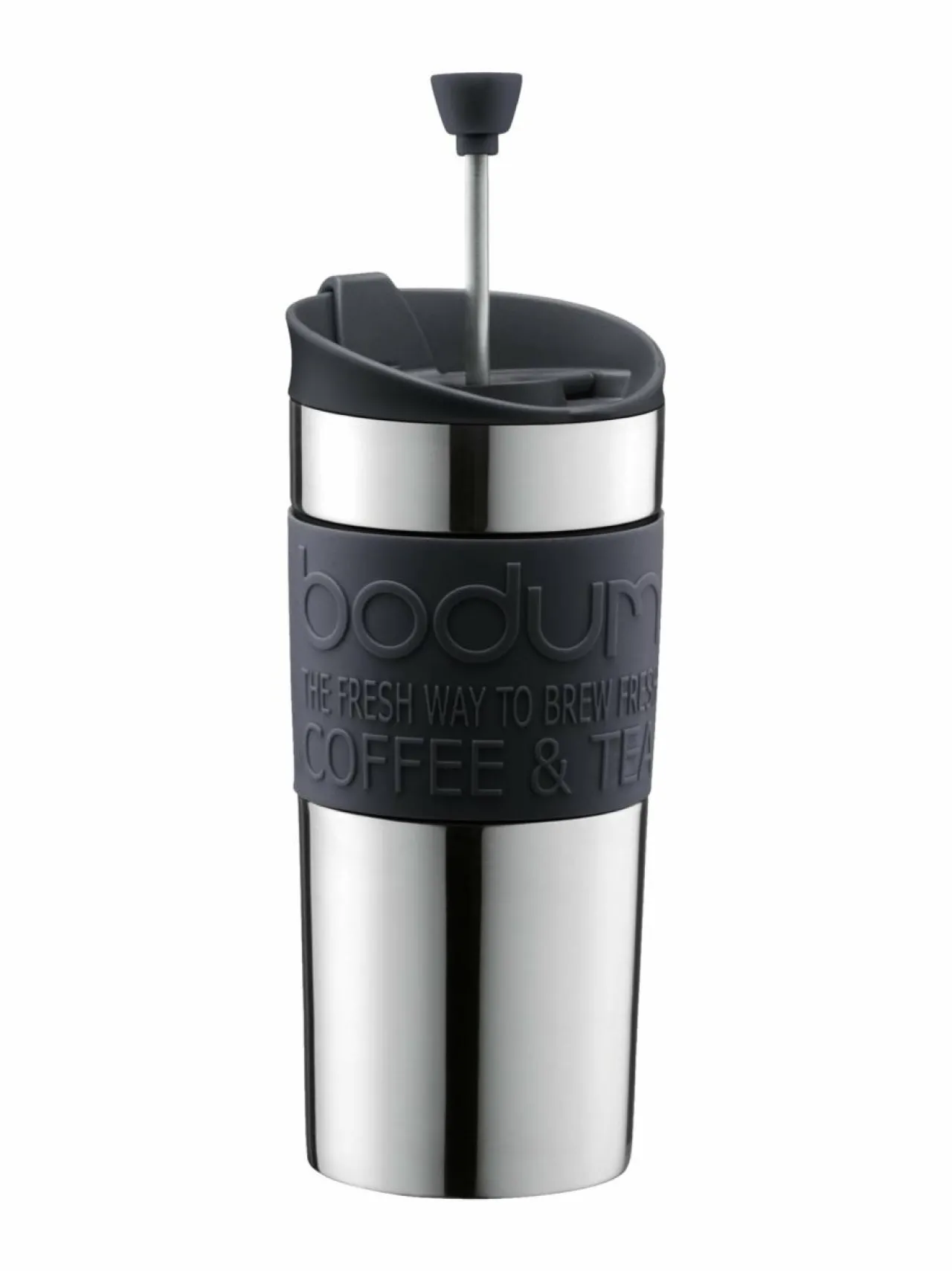 Tee, Kahvi & Vesi|Bodum Travel Press -termosmuki TERÄS/MUSTA