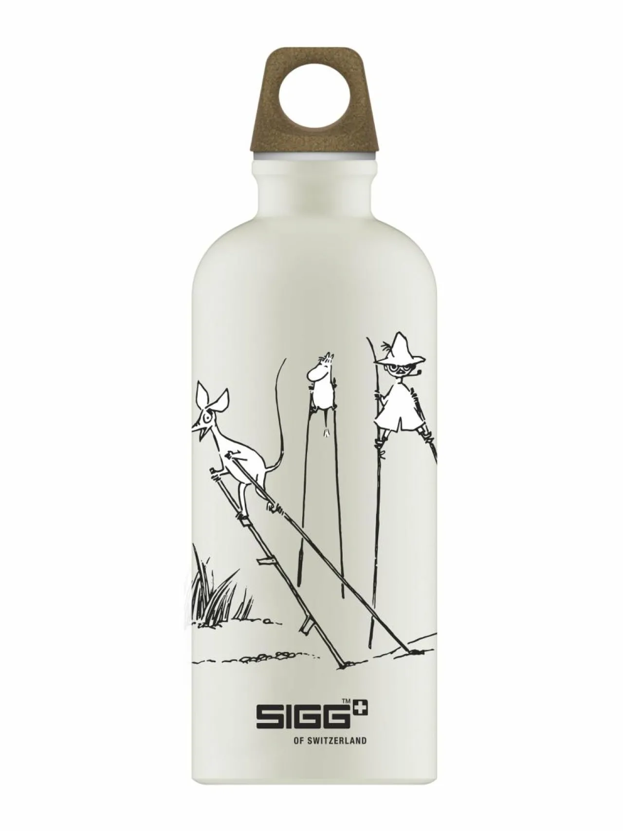 Tässä kauniissa pullossa on klassinen kuvitus Muumipeikosta, Nipsusta ja Nuuskamuikkusesta puujaloilla. Korkealaatuinen, kierrätettävä kierrätysalumiinipullo on erittäin kestävä ja kevyt.