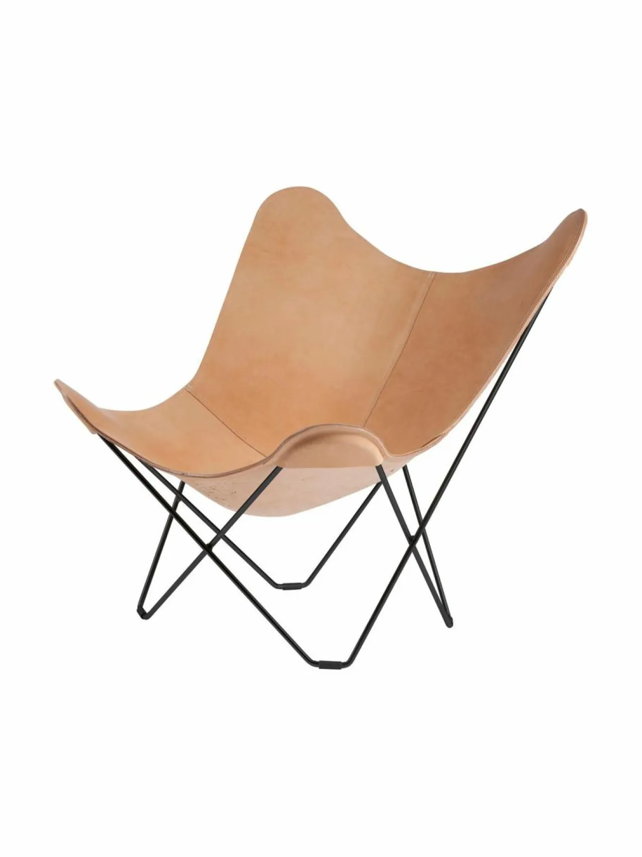 Klassinen lepakkotuoli henkii 50-luvun muotokieltä. Mustaan metallirunkoon kiinnitettävä istuinosa on laadukasta, italialaista 3,5 mm:n paksuista nahkaa.