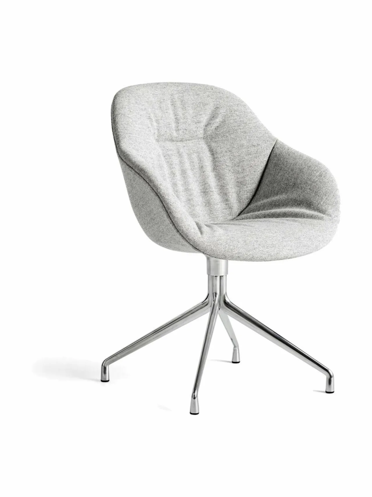 Tanskalaisen Hayn yksinkertaisen tyylikäs About A Chair AAC121 -tuoli toimii hyvin sekä ruokapöydän että neuvottelupöydän ympärillä. Pyöreälinjaisen istuinosan ansiosta tuoli on erityisen mukava, ja keskustasta leviävän jalkaosan ansiosta tuoli pyörii ympäri. Pehmustettu istuinosa toimii hienona kontrastina alumiiniselle jalalle. Tuolin jalka on kiillotettua alumiinia ja istuinosan päällinen Hallingdal-kangasta.