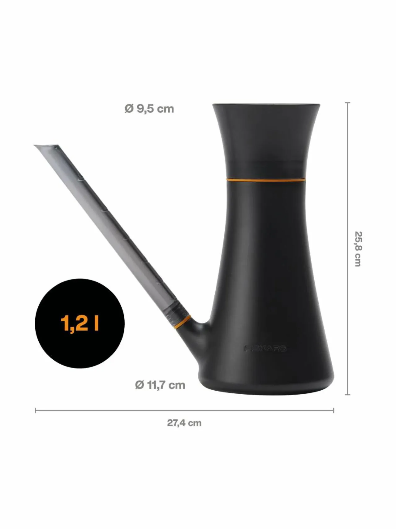 Fiskarsin kastelukannu tarjoaa tarkan kastelun pitkällä ja kapealla kaatonokalla, joka ulottuu kasveihin kaikilla korkeuksilla ja kulmilla, mikä on välttämätöntä esimerkiksi pienemmissä tiloissa.