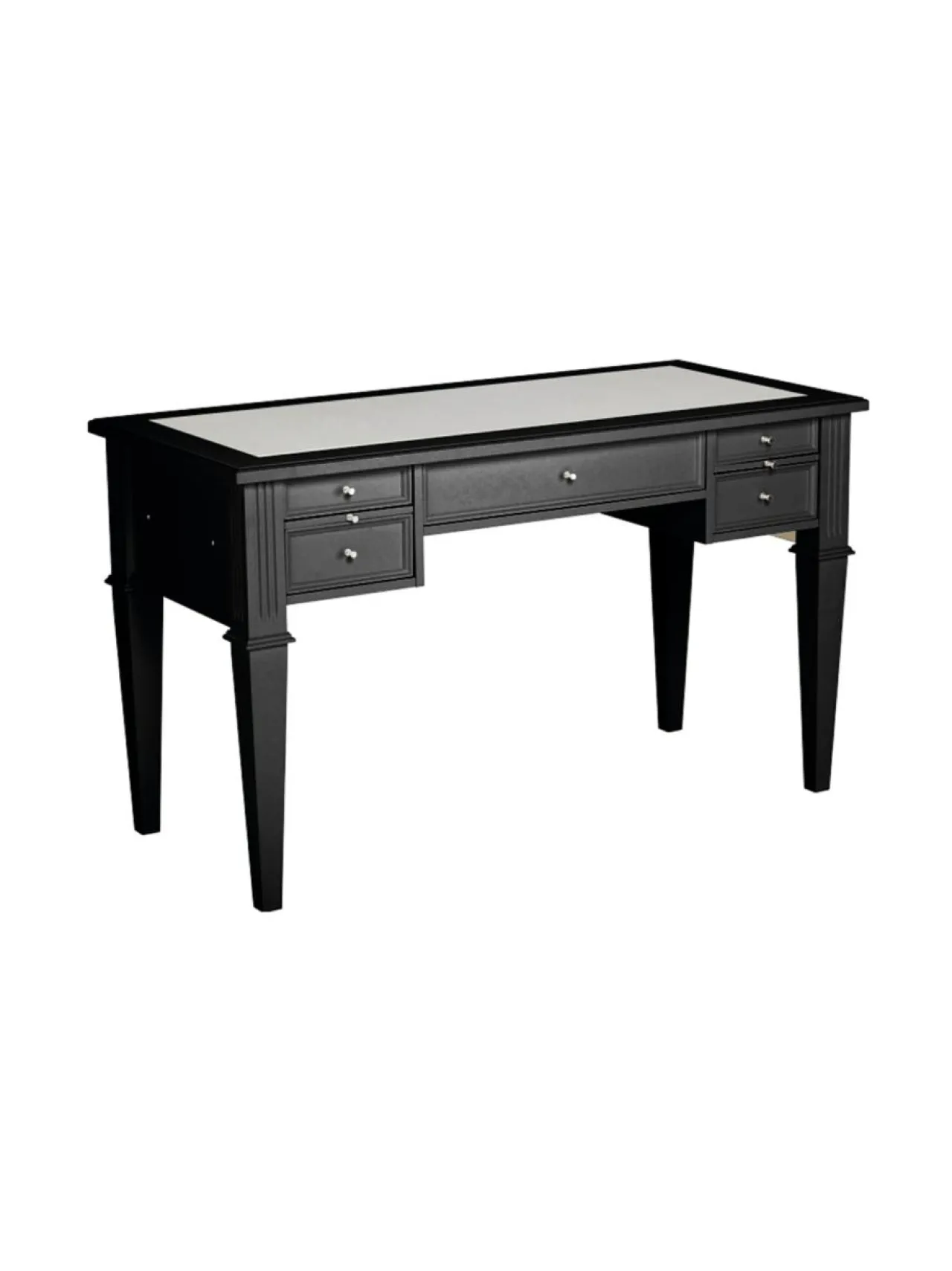 Tuotteen ulkomitat ovat: leveys 130cm syvyys 60cm korkeus 79,4cmTuotenumero712301 MateriaaliKoivu, vaneri, tekstiilinahka Hoito-ohjeetNihkeäpyyhintä nukkaamattomalla siivousliinalla VäriMUSTA AvainsanatTyöpöytä, Kirjoituspöytä