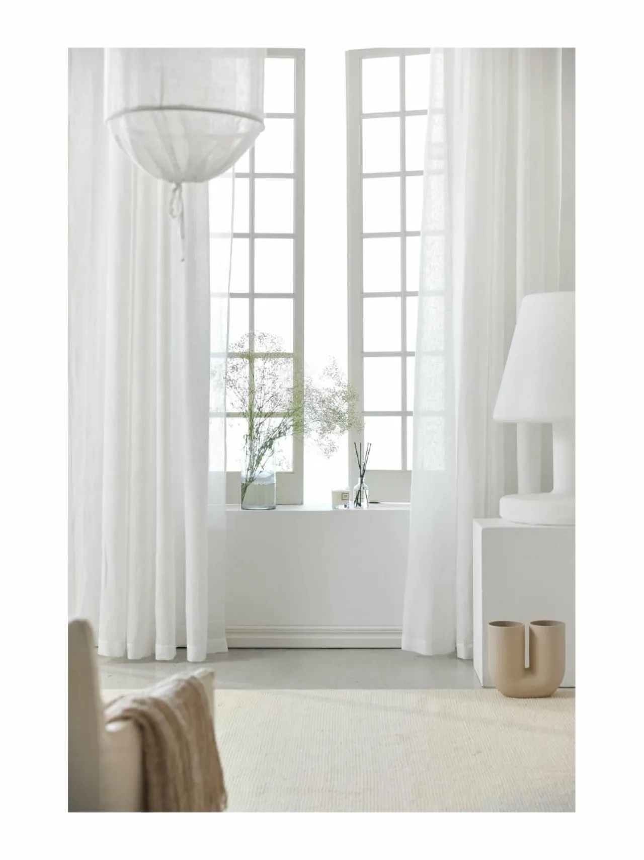Tuotenumero163064642 Materiaali100 % pellavaa Hoito-ohjeetHienopesu. Voi kutistua pesussa 2 – 4 %. Ei rumpukuivausta. PesuohjeetKonepesu Pesulämpötila40 °C Kokotiedot135 x 250 cm ValmistusmaaLiettua VäriWHITE Koko135 x 250 cm Avainsanathimla, valmisverho, pellavaverho, himla verho